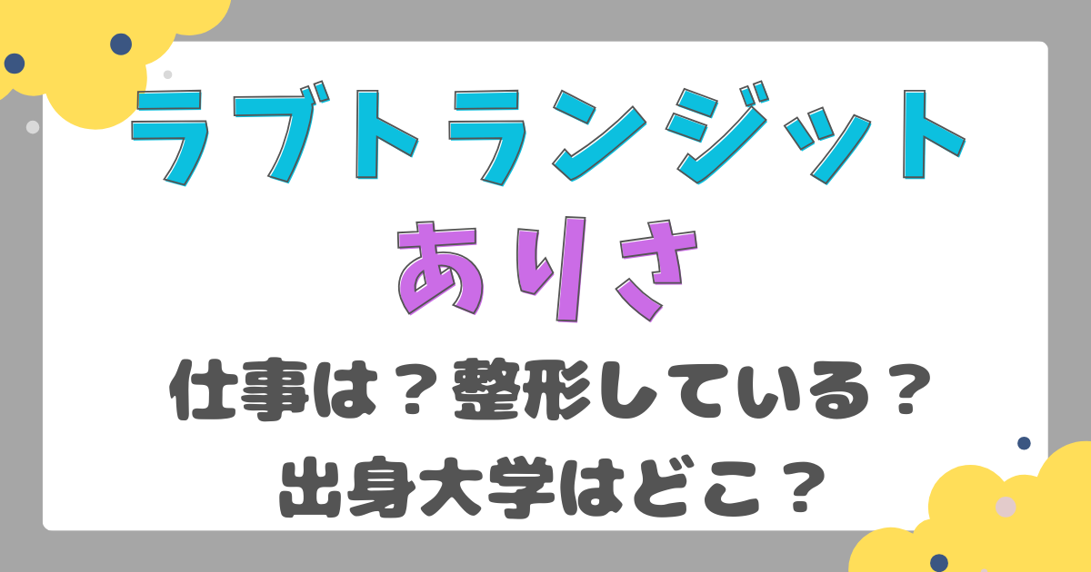 ありさの二重は整形なのか?出身大学はどこなのか?現在の仕事は?歯列矯正をしているのか?という視聴者の気になる疑問を徹底調査してみました!